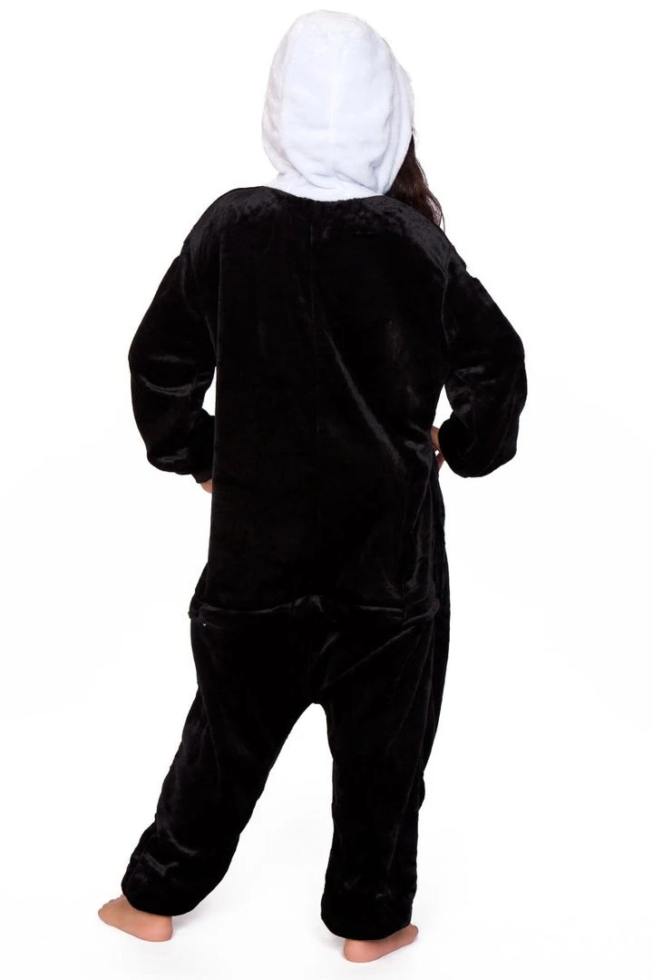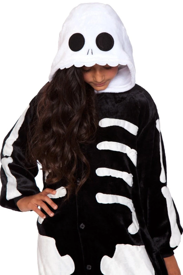 Black/white skeleton long sleeve onesie with button closure.