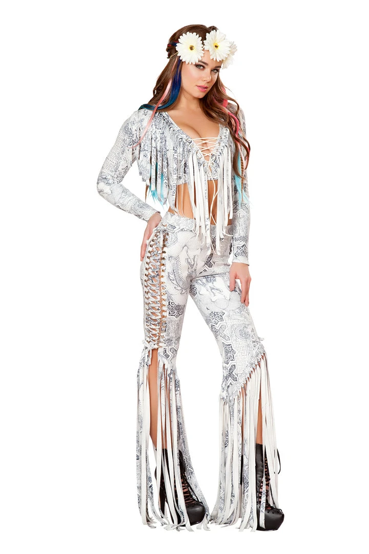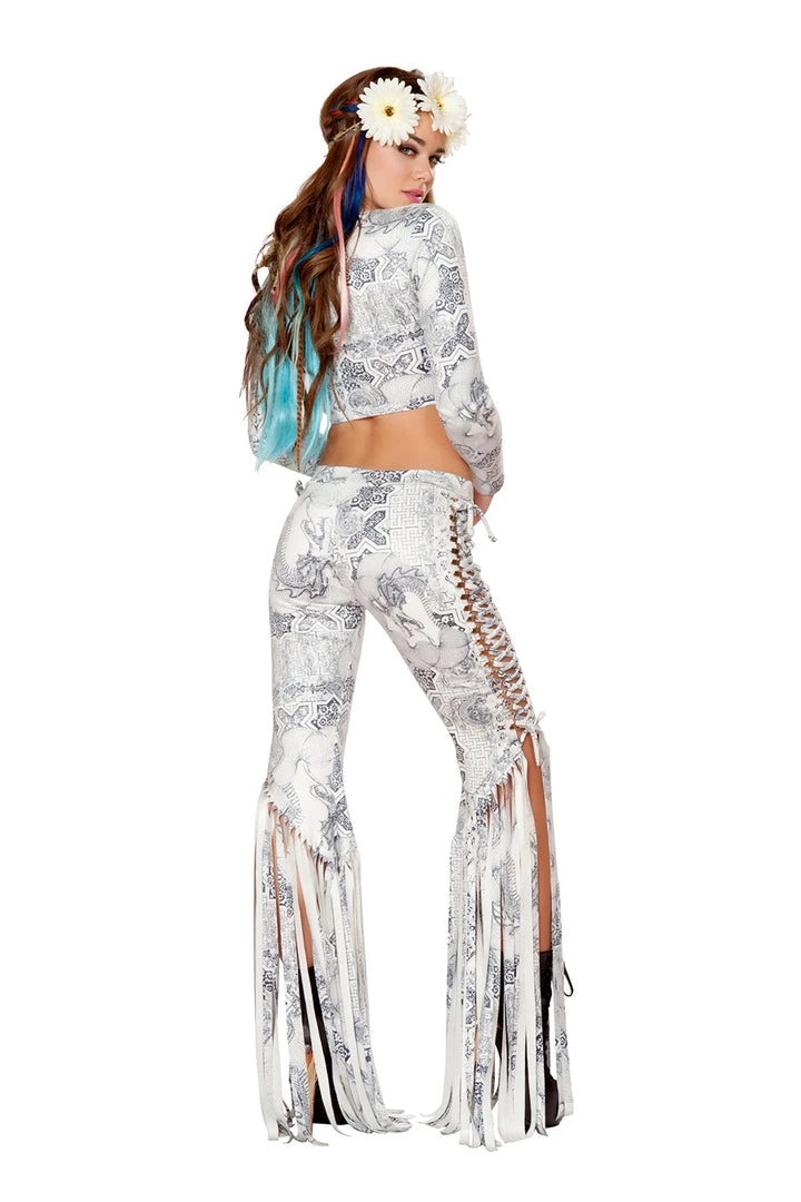Celtic Dragon Print Faux Suede Lace-Up Fringe Pants (top and light-up daisy crown sold separately)