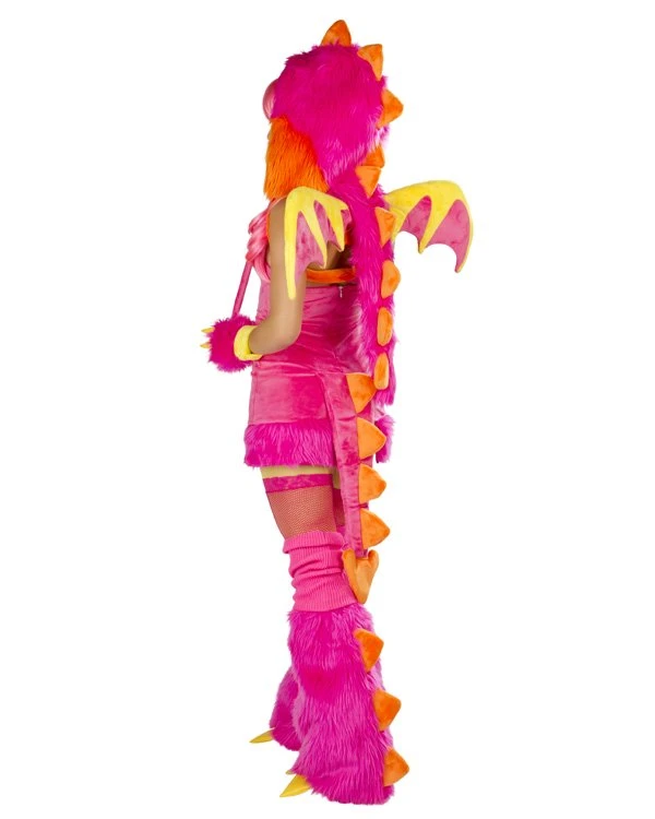 Pink Dragon Deluxe Legwarmers Includes 1 pair, Deluxe hot pink faux fur legwarmers with orange spikes and yellow claws,extra wide elastic for fit. (Fishnet and knit legwarmers not included) (Pink dragon costume, hood, wings and gloves sold separately)