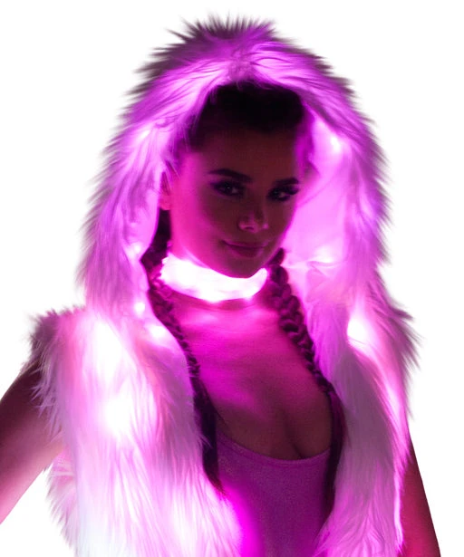 White and Pink Light-Up Choker (Bodysuit, tops and fur duster sold separately)