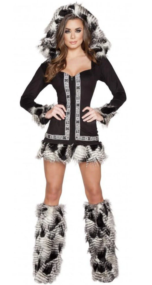 Includes Zipper-Front Hoodie Dress with Fur Trim Detail