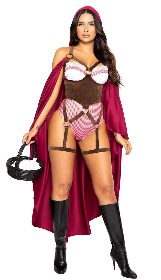 Includes Off-The Shoulder Cape with Harness Waist Cincher, and Romper.