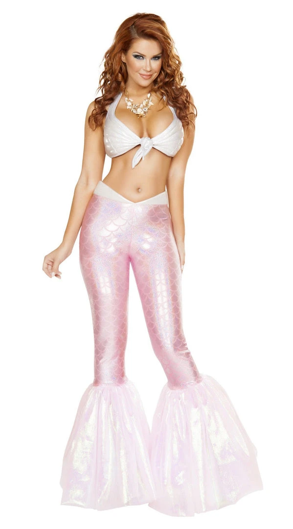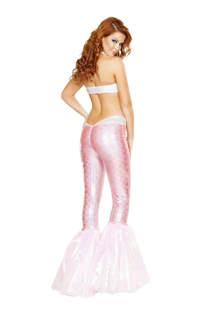 Includes Haltered Tie Top with Sea Shell Look, and High Pants with Zip-up Back Closure and Iridescent Mermaid Tail