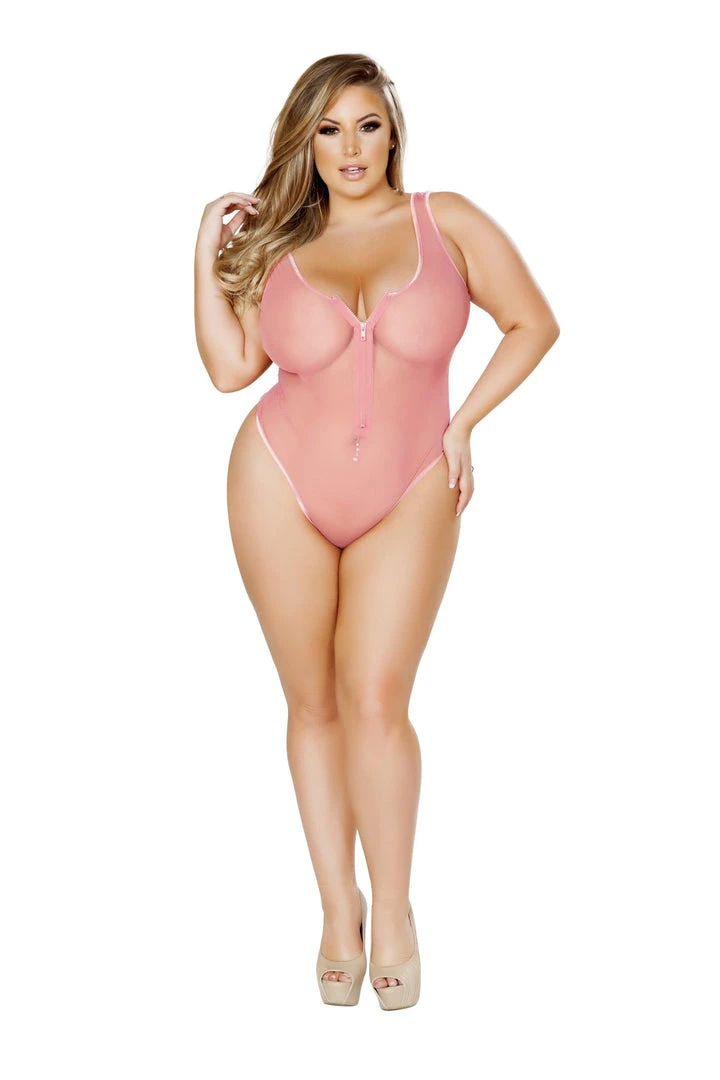 Zip-Up Fishnet Teddy with Thong Back and Snap Bottom